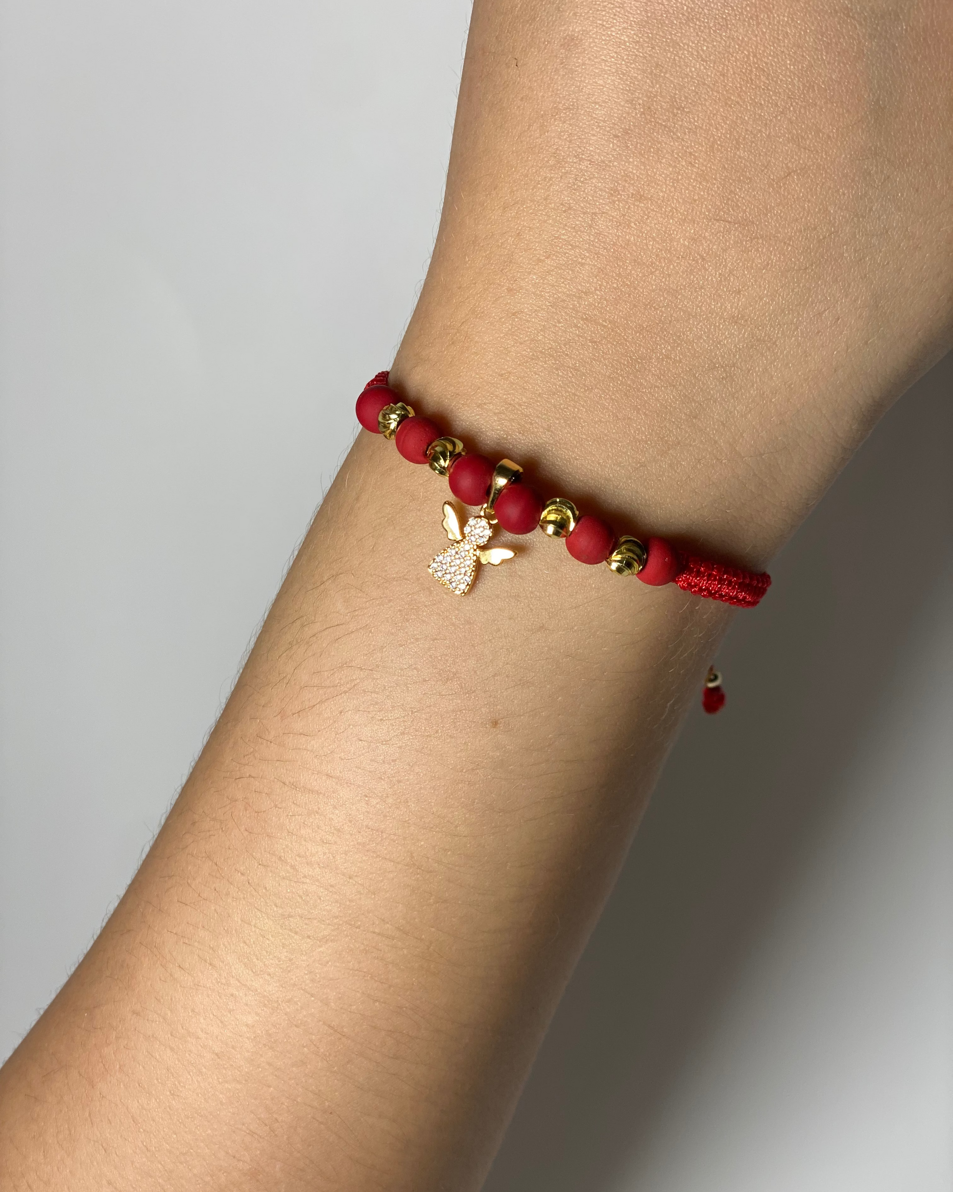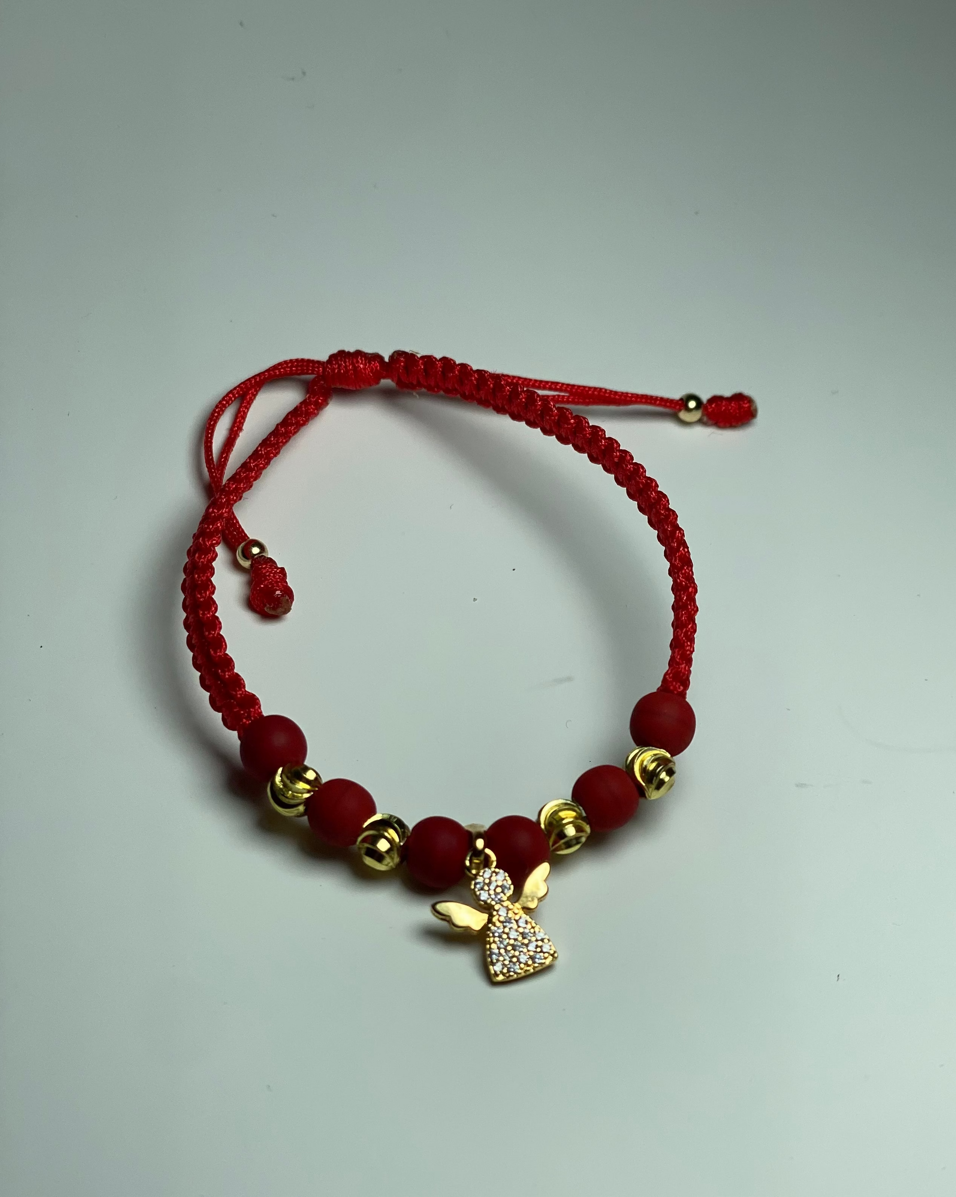 👼 Pulsera tejida con dije de angelito en oro laminado 👼