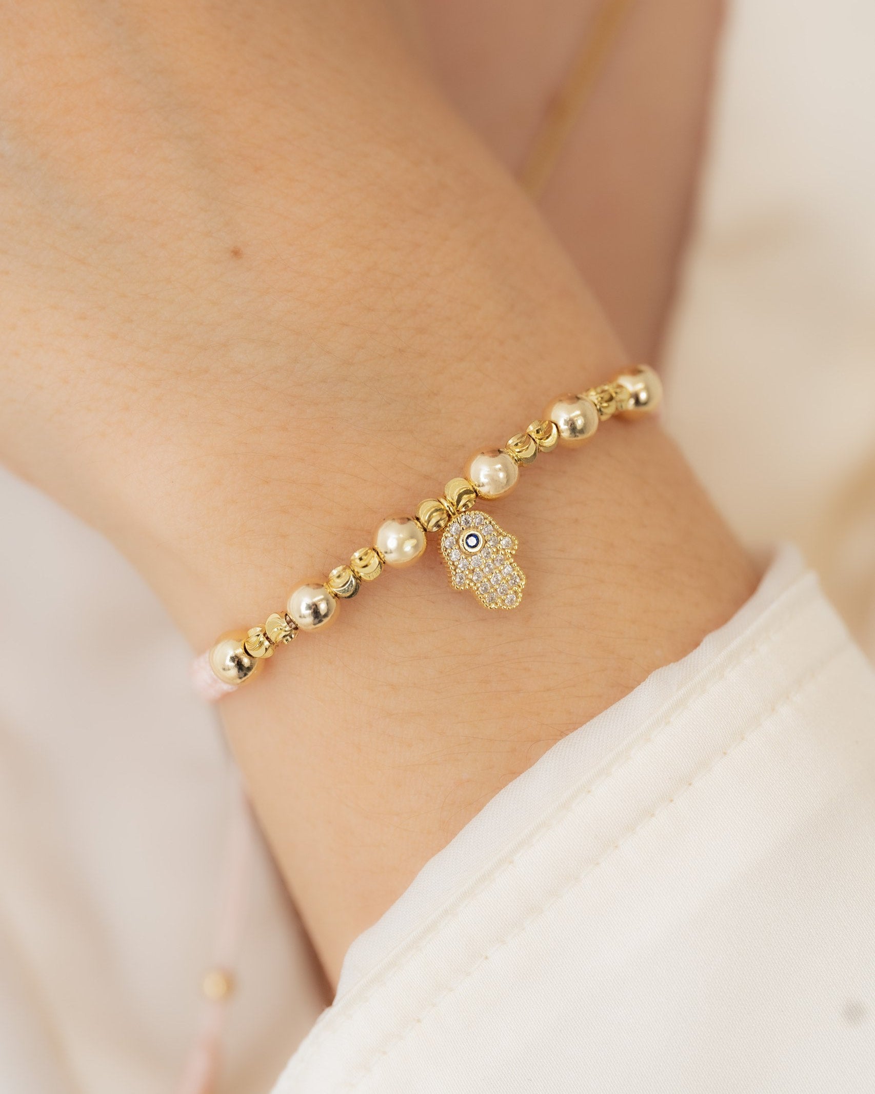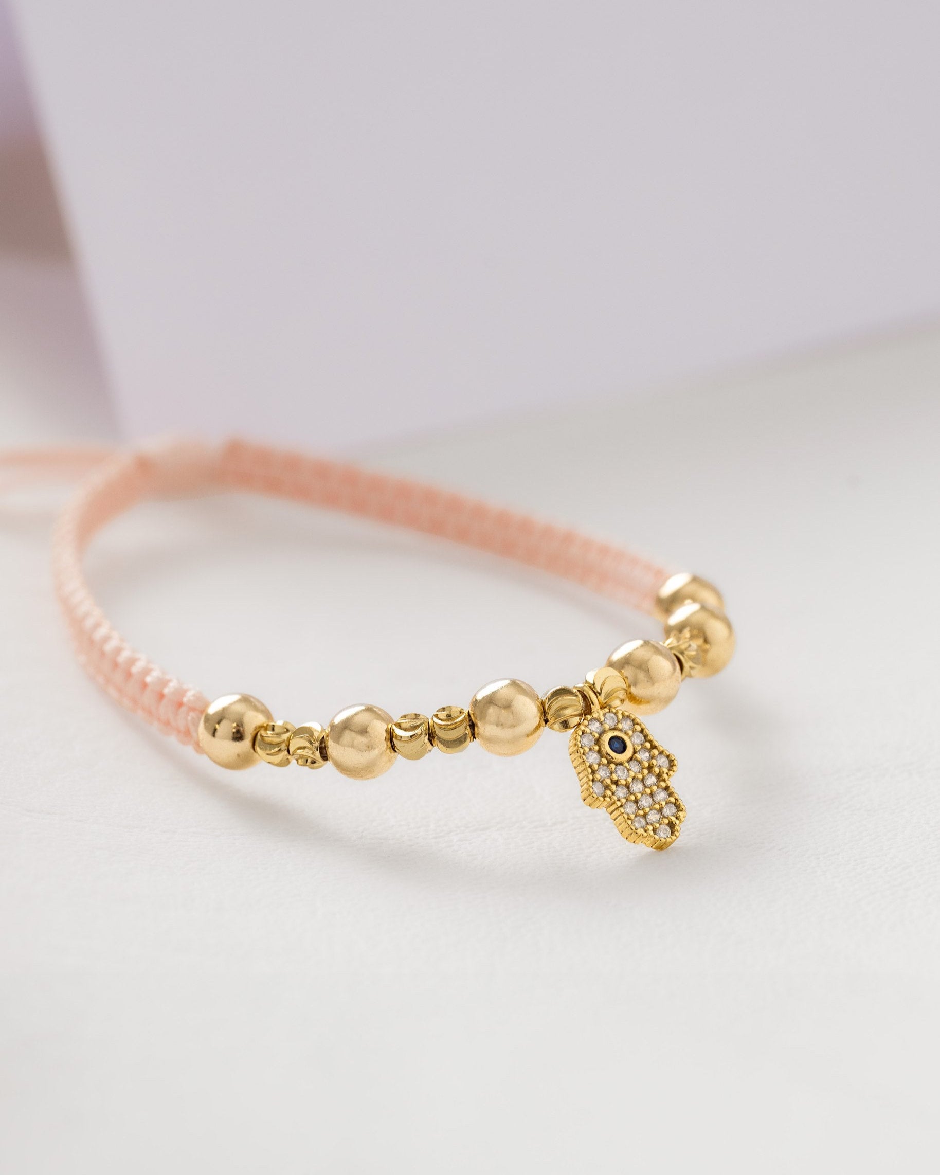 🪬 Pulsera tejida con dije de la Mano de Dios en oro laminado 🪬
